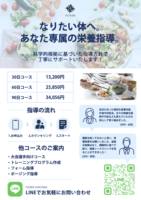 FLEXER COACHINGの食事指導を組み合わせることで、